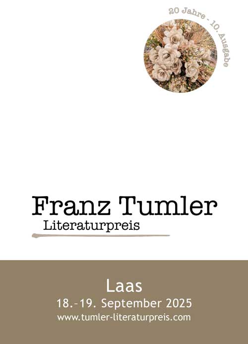 Die Gemeinde Laas, der Bildungsausschuss Laas, der Südtiroler Künstlerbund und der Verein der Vinschger Bibliotheken vergeben im September 2025 zum zehnten Mal den Franz-Tumler-Literaturpreis.